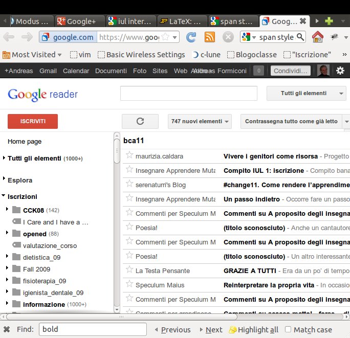 A completamente del compito 2 aggiungo quindi l’esecuzione di uno screenshot (“istantanea” dello schermo o di una sua parte) in cui si veda la propria pagina Google Reader (o altro aggregatore), dalla quale si possa evincere l’appartenenza, così: