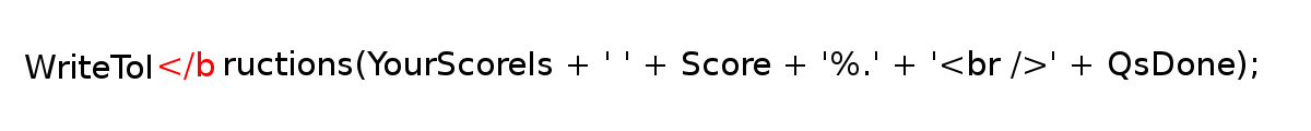 una riga di codice corretta in un quiz fatto con hot potatoes